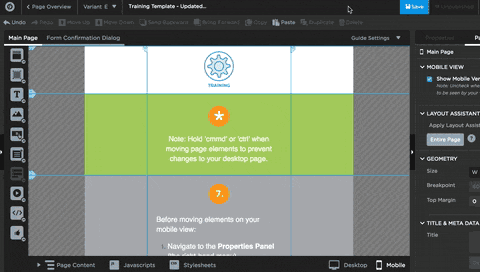 All page elements should sit inside the blue page guides. Anything outside is highlighted in red.